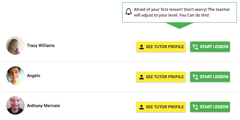 Go through the list of available tutors. You can learn with your favourite tutor or pick a different one every time.